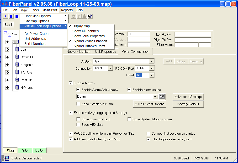 FiberPanel Graphical User Interface Simplifies Configuring, Monitoring, and Maintaining Your FiberLoop III Network